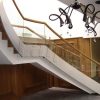 Laiptų pakopos ir porankiai lakuoti trinčiai atspariu laku.