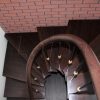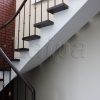 Laiptai sukti 180 laipsnių kampu ant siauros betoninės konstrukcijos su lygia apačia.