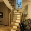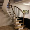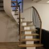 Laiptai ant suktos , siauros ir platėjančios betoninės konstrukcijos . 43 mm storio laiptų pakopos pagamintos iš uosio medienos. Porankis stačiakampio formos, apvalintas. Statramsčiai pagaminti iš apvalių plieninių vamzdelių, dažyti. Visos medinės detalės tonuotos ir lakuotos trinčiai atspariu laku.