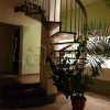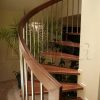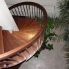 Laiptai iš uosio, sukti, tonuoti. Laiptų porankis stačiakampio formos, užapvalintas.