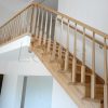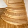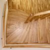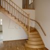 Klasikinio stiliaus laiptai su vienu posūkiu pagaminti iš uosio medienos. Pakopų priekiai palenkti.