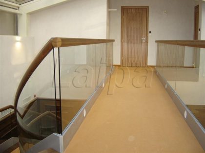 Laiptų porankis – kvadrato formos, užapvalintas, sumontuotas ant nerūdijančio