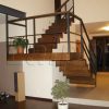 Laiptų pakopos ir porankiai lakuoti trinčiai atspariu laku. Tvorelė – dažyta.