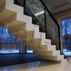 Laiptų pakopos ir porankiai lakuoti trinčiai atspariu laku.