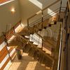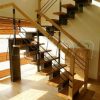 Laiptai iš ąžuolo, su dviem posūkiais. Porankis stačiakampio formos,