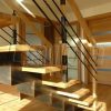 Laiptų pakopos ir porankiai lakuoti trinčiai atspariu laku.