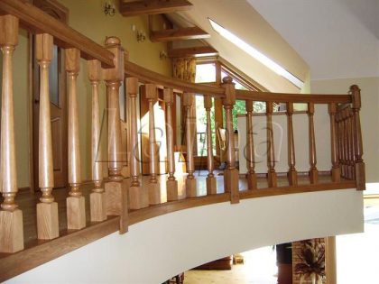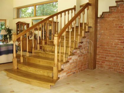Laiptai is ąžuolo, tonuoti, sukti. Porankis apvalus,
