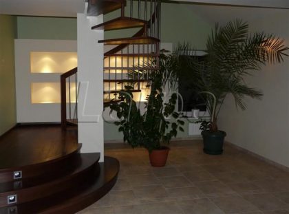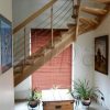 Laiptai iš uosio, su posūkiu. Laiptų porankis – stačiakampio formos, užapvalintas,