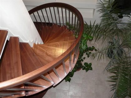 Laiptų pakopos ir porankiai lakuoti trinčiai atspariu laku.