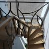 Laiptai iš ąžuolo, su dviem posūkiais ir aikštele. Laiptų porankis