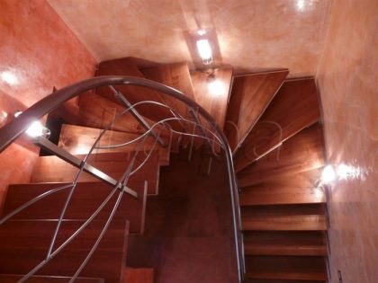 Laiptų pakopos ir porankiai lakuoti trinčiai atspariu laku.