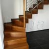 Laiptai iš uosio, tonuoti, su dviem posūkiais. Porankis stačiakampio