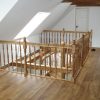 Laiptų tvorelė ,,klasikinio stiliaus” iš ąžuolo medienos. Statramsčiai ir atraminiai stulpai – tekinti Porankis frezuotas,, klasikiniu raštu” . Visos detalės alyvuotos.